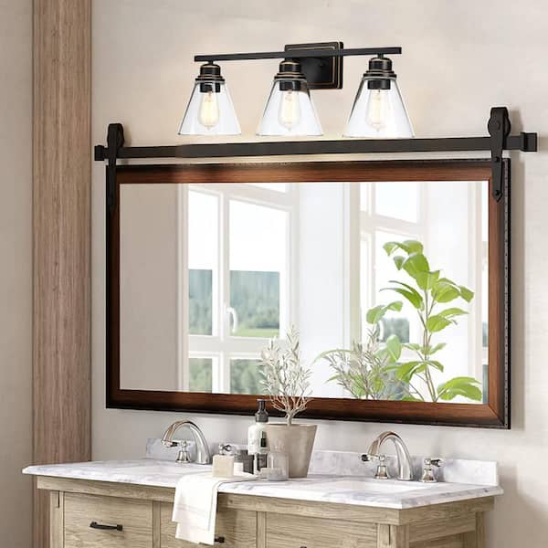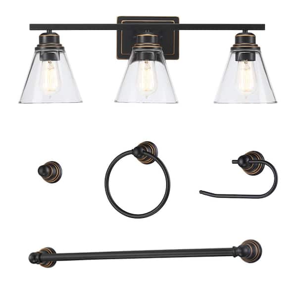 Romance 25.98 in. 3-Light Vanity Light with Oil Rubbed Bronze Finish and Clear Glass Shade and Bath Set (5-Piece)