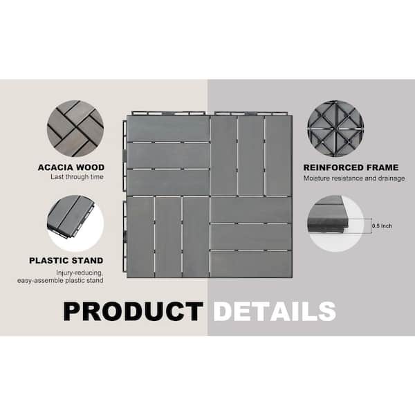 12 in. x 12 in. Square Acacia Wood Checker Pattern Patio Interlocking Deck Tiles, Light Gray (10-Pieces)