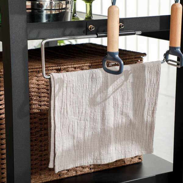 32 in. x 20.5 in. 3-Shelf Grill Cart with Sliver Stainless Steel Tabletop, Side Handle, 2 Wheels, Tool Hooks, Black