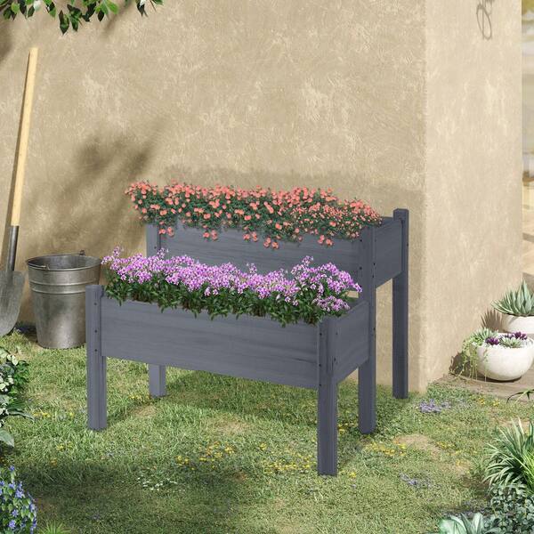 34 in. x 34 in. x 28 in. 2-Tier Elevated Wood Planter Box for Backyard and Patio to Grow Vegetables and Flowers, Gray