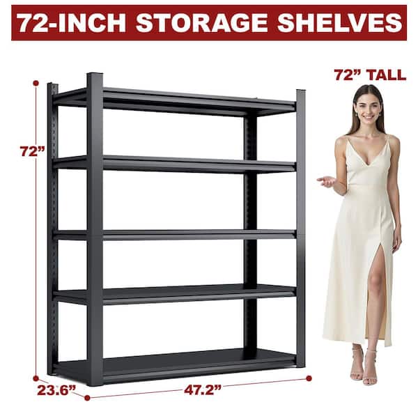 5-Tier Heavy Duty Steel Adjustable Garage Storage Shelving Unit in Black (47 in. W x 72 in. H x 23.6 in. D)