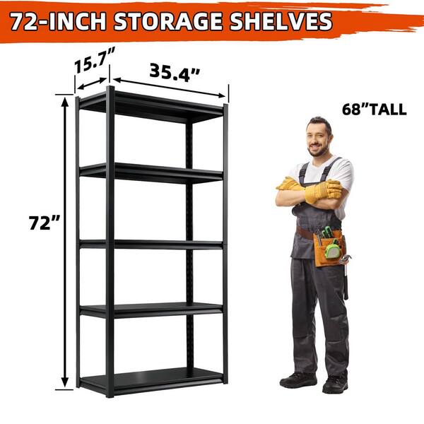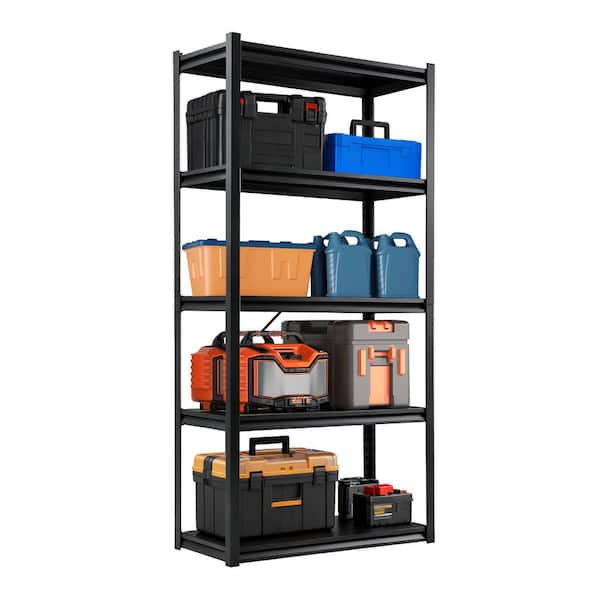5-Tiers Steel Adjustable Garage Storage Shelving Unit in Black (35.5 in. W x 72 in. H x 15.8 in. D)