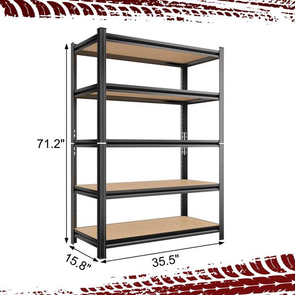 5-Tiers Steel Adjustable Garage Storage Shelving Unit in Black (35.5 in. W x 72 in. H x 15.8 in. D)
