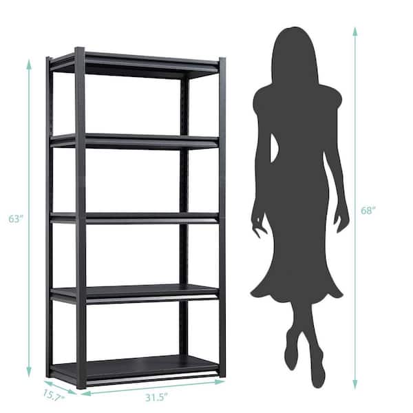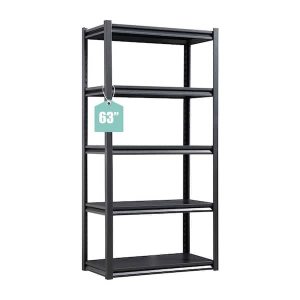 5-Tiers Steel Heavy Duty Adjustable Boltless Design Shelving Unit in Black (31.5 in. W x 63 in. H x 15.7 in. D)