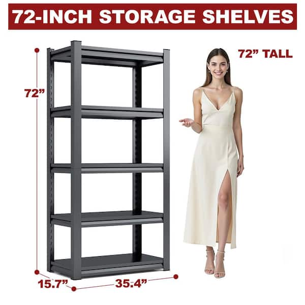 5-Tiers Steel Heavy Duty Adjustable Boltless Design Shelving Unit in Black (35.4 in. W x 72 in. H x 15.7 in. D)
