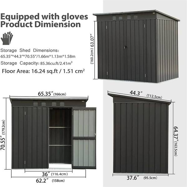5 ft. W x 3 ft. D Garden Metal Rainproof Shed with Latches, Lockable Door and Vents, Dark Gray (15 sq. ft.)