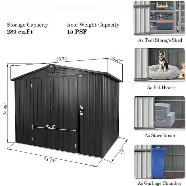 8.2 ft. W x 6.2 ft. D Metal Outdoor Storage Shed with Lockable Double Door and Built-in Air Vent, Black 50.84 sq. ft.