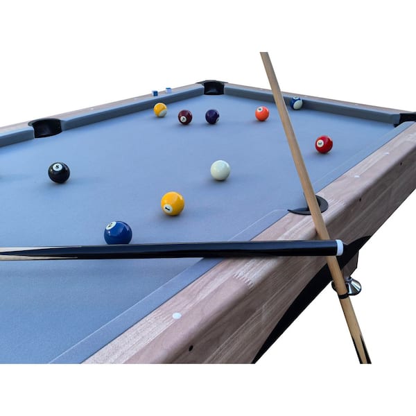 • 84 in. pool table with blue cloth and cues for convenience
