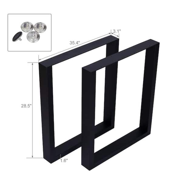 Black 35.4 in. x 28.5 in. x 3.1 in. Steel Heavy Duty Table Legs Frame, Weight Capacity 2200 lbs. (Set of 2)