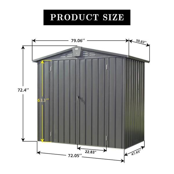 Black 6.5 ft. W x 4.2 ft. D Metal Shed with Lockable Double Door, Vents (27.3 sq. ft.)