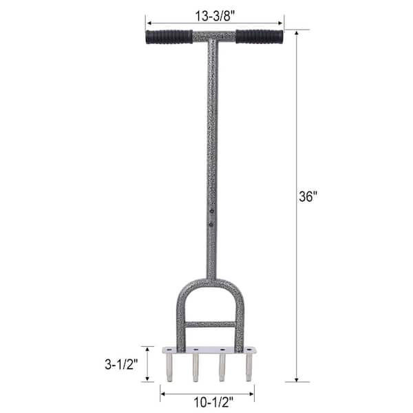 Gray Steel Lawn 4-Tine Aerator, 4 Corer Plug Aerator Toolwith Soft Rubber Grip for Loosening Soil