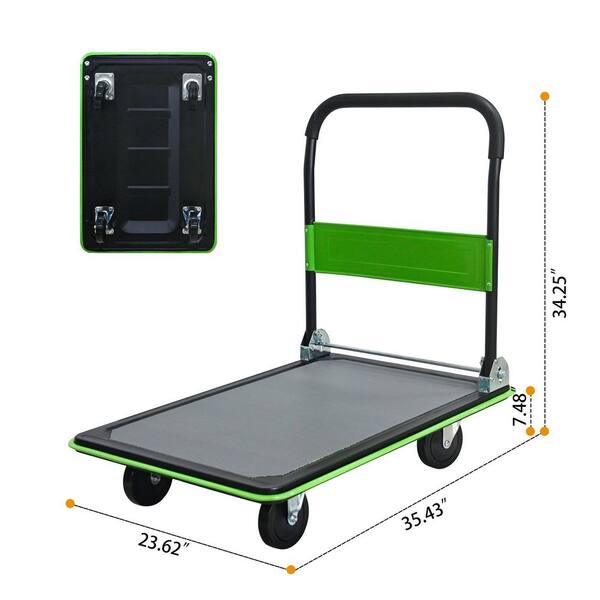 Green 660 lbs. D-Handle Foldable Platform Hand Truck with 2 360° Wheels and 2-Fixed Wheels