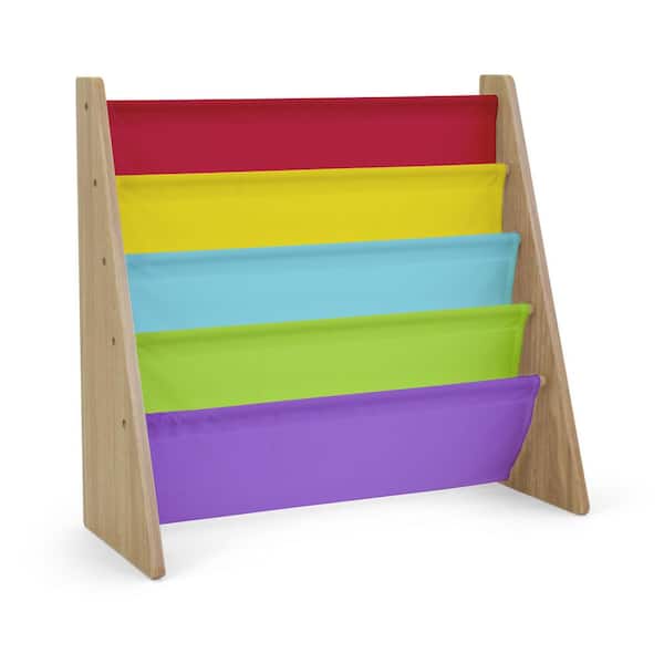 25 in. Wide RainbowithNatural Wood 4-Tier Kids Book Rack Storage Bookcase, 24 in. H