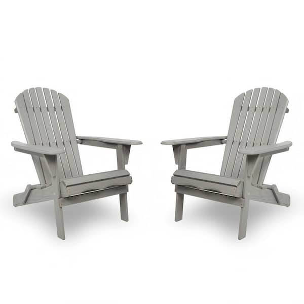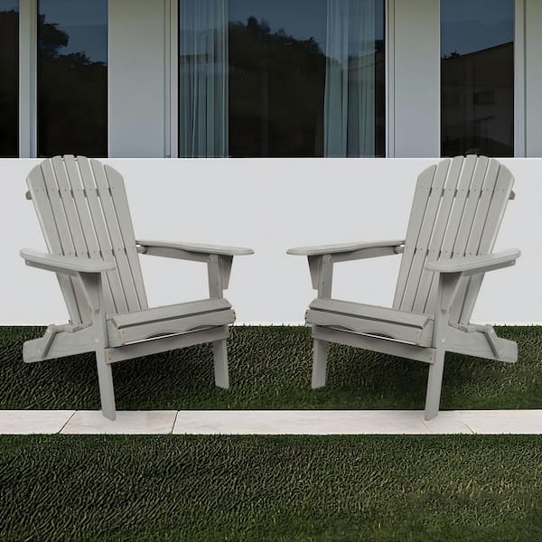 Gray Wooden Outdoor Folding Adirondack Chair (2-Pack) Lounge Patio Chair for Garden, Lawn, Backyard, Pool Side