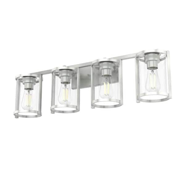Astwood 33.25 in. 4-Light Brushed Nickel Vanity Light with Clear Glass Shades Bathroom Light