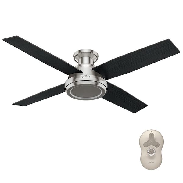 Dempsey 52 in. Low Profile No Light Indoor Brushed Nickel Ceiling Fan with Remote Control For Bedrooms