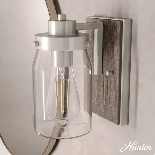 Devon Park 1-Light Brushed Nickel Wall Sconce with Clear Glass Shade Bathroom Light
