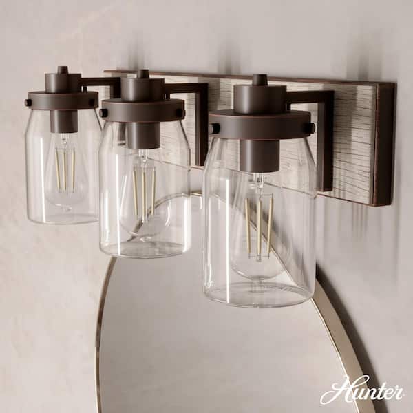 Devon Park 24 in. 3-Light Onyx Bengal Vanity-Light with Clear Glass Shades Bathroom Light