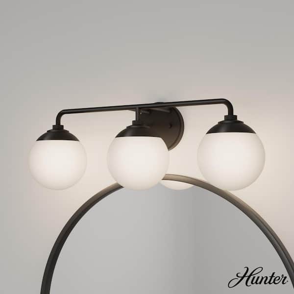 Hepburn 25 in. 3-Light Matte Black Vanity Light with Cased White Shades