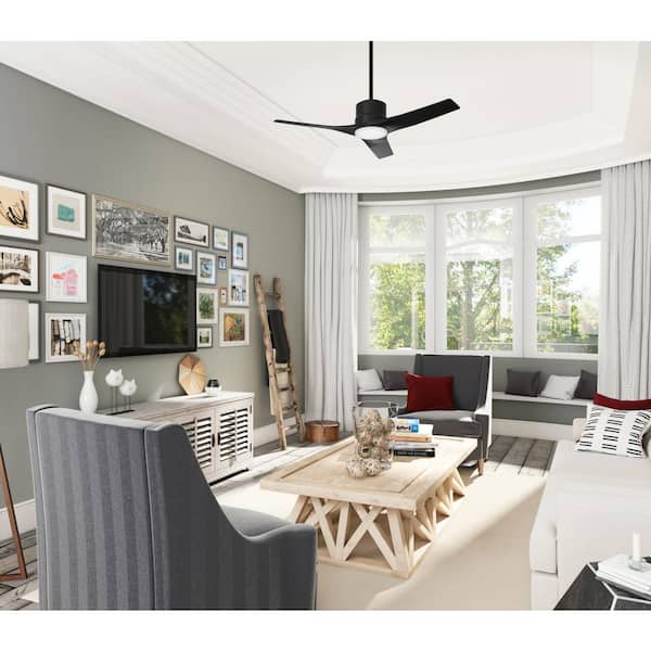 Piston 52 in. Integrated LED Indoor/Outdoor Matte Black Ceiling Fan with Light Kit and Remote