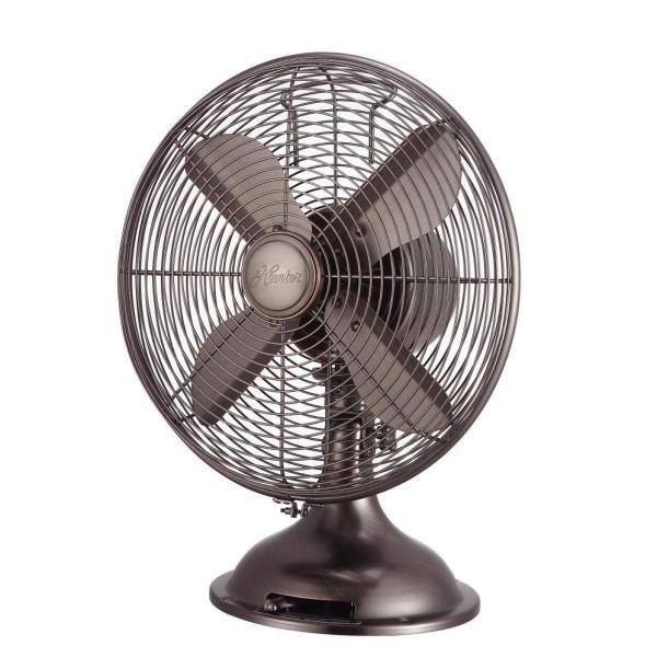 Retro 12 in. 3 Speed All-Metal Table Fan with Wide Oscillation in Onyx Copper