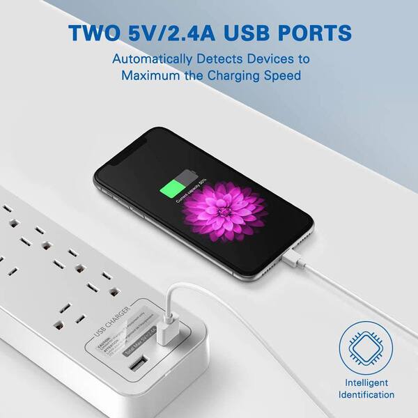 Power Strip Surge Protector with 12 AC Sockets and 2 USB Charging Ports in White (4-Pack)