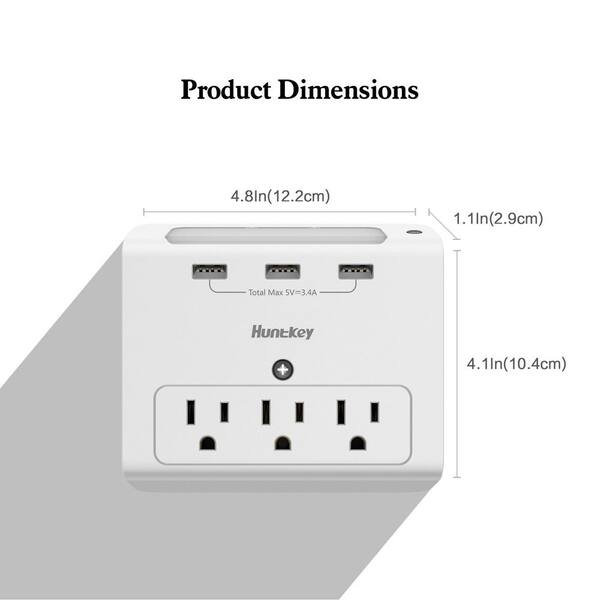 Wall Mount Outlet with 3 2.1 Amp USB Ports and 3 Outlets, White (3-Pack)