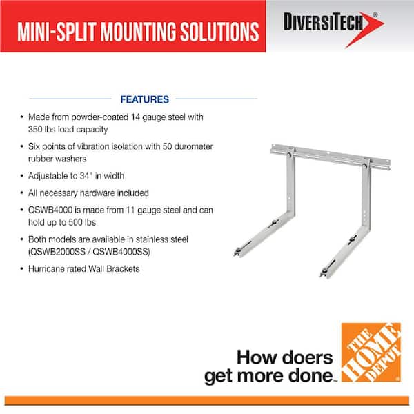 Hurricane-Rated Stainless Steel Mini Split Wall Bracket with Adjustable Mounting Rail