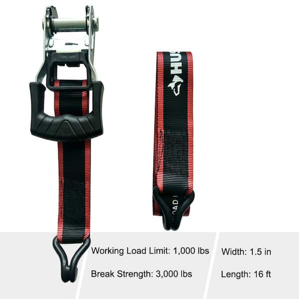 16 ft. x 1-1/2 in. Ratchet Tie-Down Straps with J Hook (2-Pack)