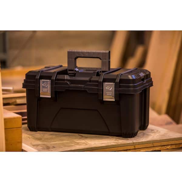 22 in. Black Plastic Portable Tool Box with Metal Latches