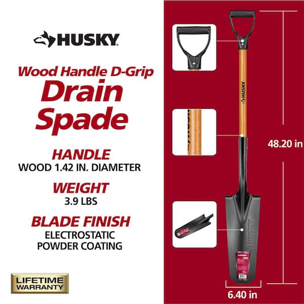 28 in. Wood Handle D-Grip Carbon Steel Drain Spade