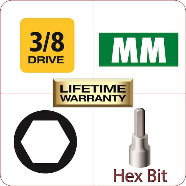 • Socket bits are designed for use with 3/8 in. drive tools