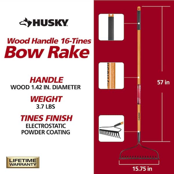 57 in. Wood Handle 16-Tine Bow Rake