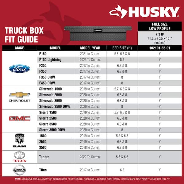 • Truck tool box dimensions 71.3 in. x 20.5 in. x 15.6 in.