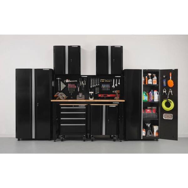 98 in. H x 108 in. W x 24 in. D Steel Garage Cabinet Set in Black (6-Piece)
