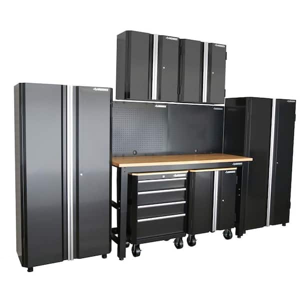 98 in. H x 145 in. W x 24 in. D Steel Garage Cabinet Set in Black (8-Piece)