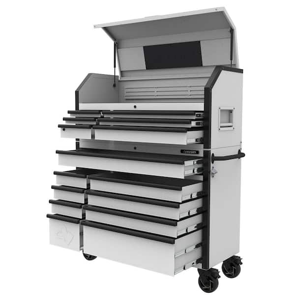 Heavy-Duty 52 in. W 15-Drawer Matte White Steel Rolling Tool Chest Combo