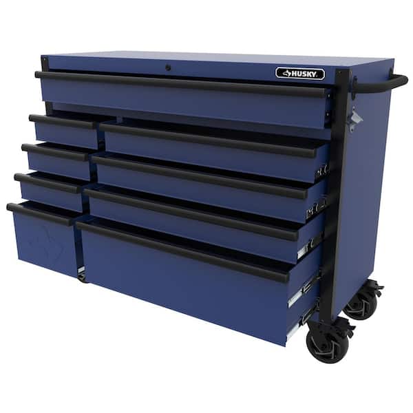 Heavy-Duty 52 in. W x 20 in. D 9-Drawer Matte Blue Rolling Tool Cabinet