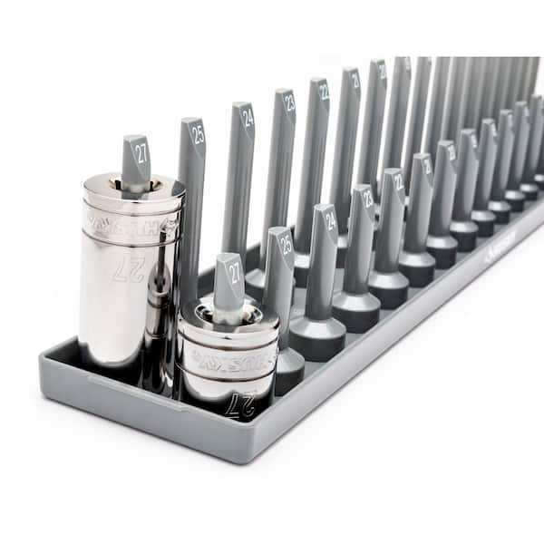• Pegs feature size markings for easy socket organization