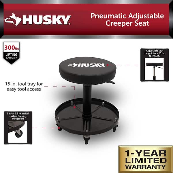 Pneumatic Adjustable Creeper Seat with 15 in. Tool Storage Tray
