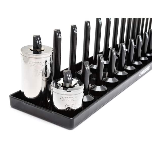 • Socket tray includes 1/4", 3/8", and 1/2" drive racks