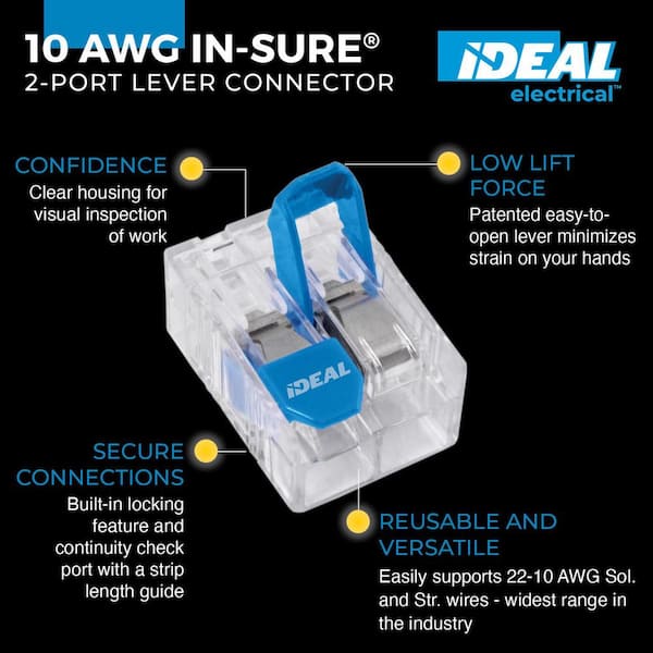 In-Sure Lever Wire Connector, 10 AWG, 2-Port Jar of 350