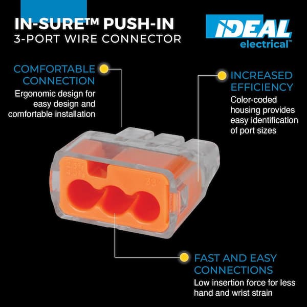 In-Sure Push-In Wire Connector, 3-Port, Bag of 10