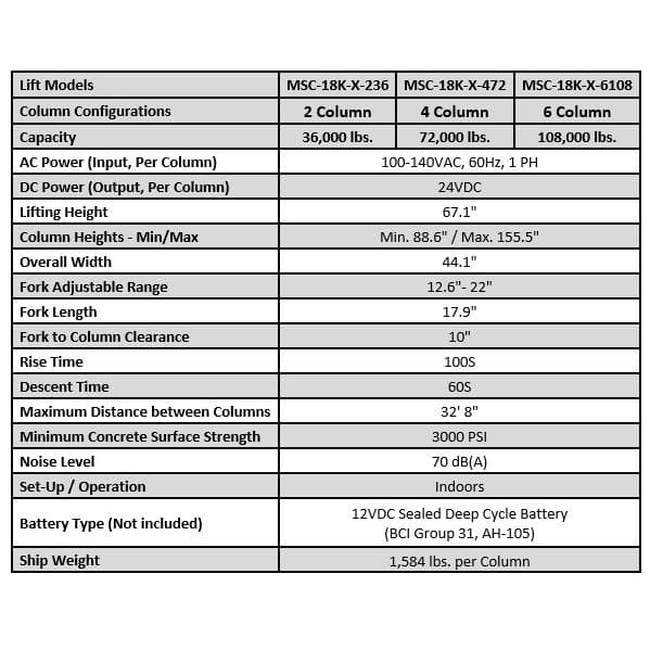 MSC-18K-X Mobile Column Car Lift, 4-Column Set, 72,000 lbs. ALI Certified w/PU