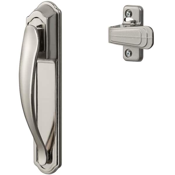 Satin Nickel Storm and Screen Door Pull Handle Set with Back Plate