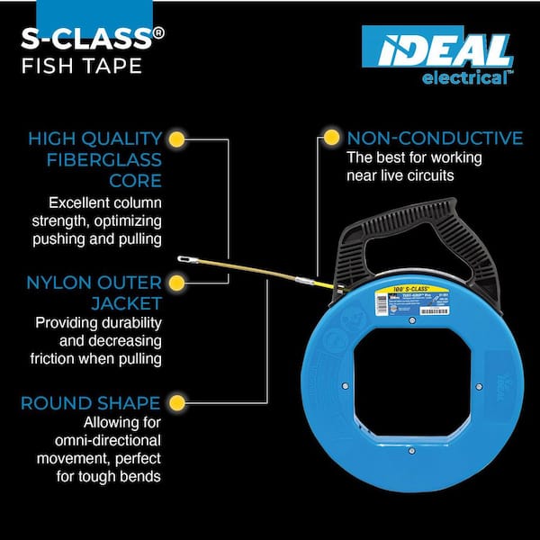 Tuff-Grip Pro 100 ft. x 3/16 in. S-Class Fish Tape with Leader