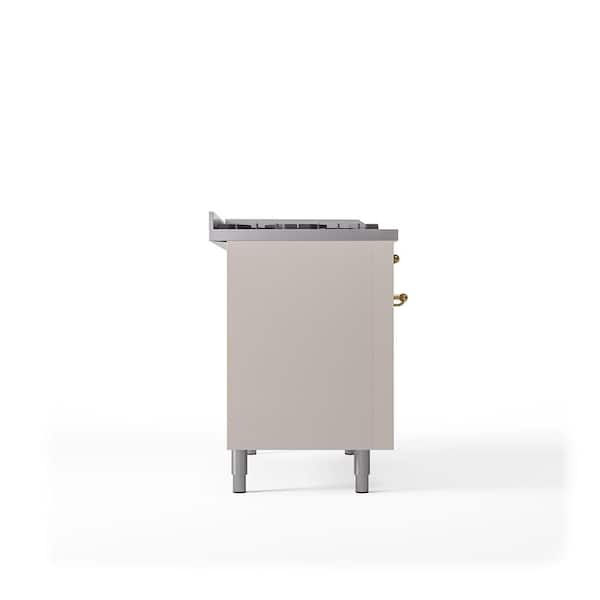 Nostalgie II 48 in. 5 Burner+Frenchtop+Griddle Freestanding Double Oven Dual Fuel Range in Antique White with Brass
