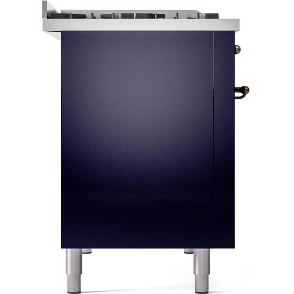 Nostalgie II 48 in. 8-Burner Plus Griddle Double Oven Natural Gas Dual Fuel Range in Midnight Blue with Bronze Trim