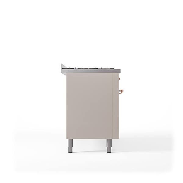 Nostalgie II 60 in. 9 Burner+Griddle Freestanding Double Oven Dual Fuel Range in Antique White with Copper