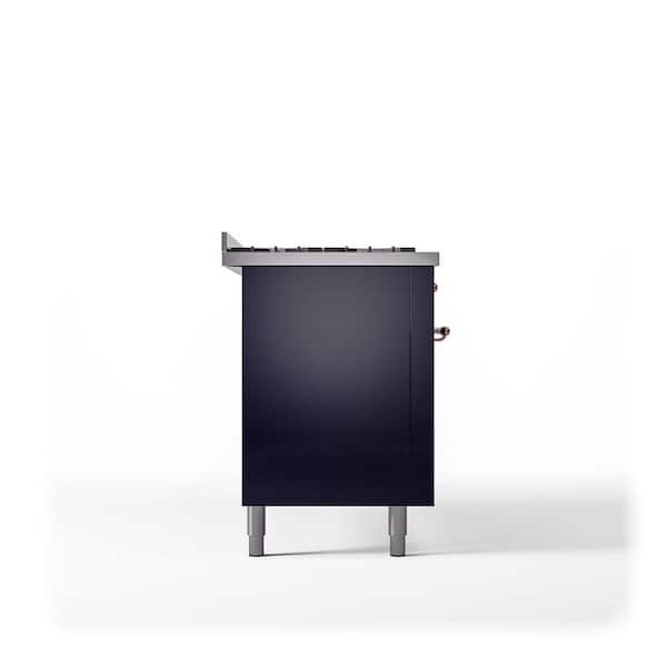 Nostalgie II 60 in. 9 Burner+Griddle Freestanding Double Oven Dual Fuel Range in Midnight Blue with Copper